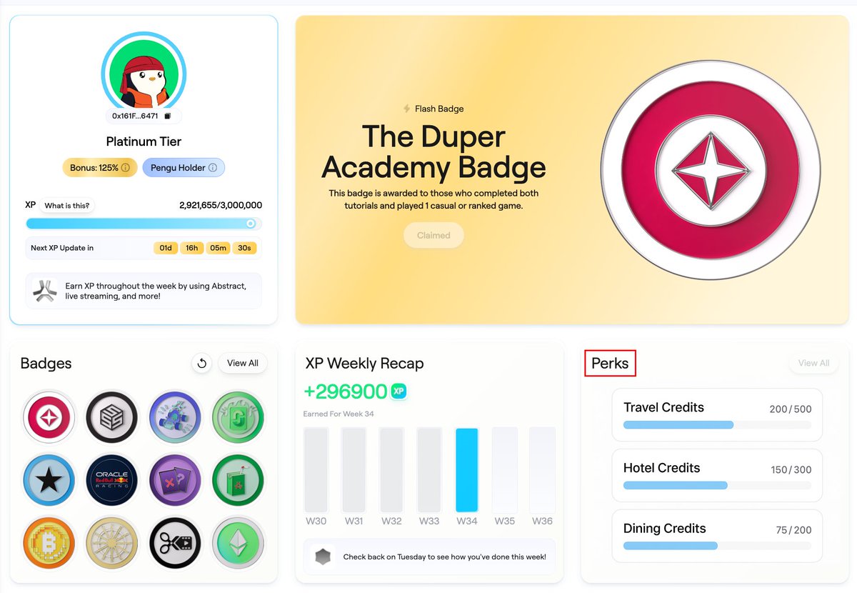 - @LucaNetz , CEO of Pudgy Penguins & co-founder of Abstract, mentioned how the XP system will last beyond the Abstract TGE.
