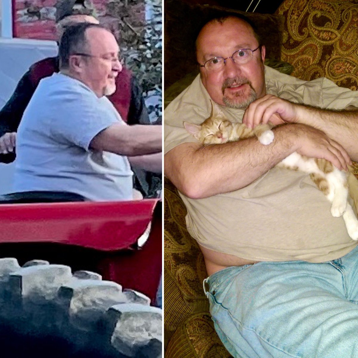 The third picture is in 2022 when I was 65 years old. By this time I'd ballooned to 240 pounds at 5’ 5” tall and was an absolute mess. I had to use a CPAP + oxygen for sleep apnea, I had asthma, arthritis, high triglycerides, high A1C, was becoming pre-diabetic, and had an almost nonexistent testosterone level of 80 ng/dl. Doctor urged me to make a change.