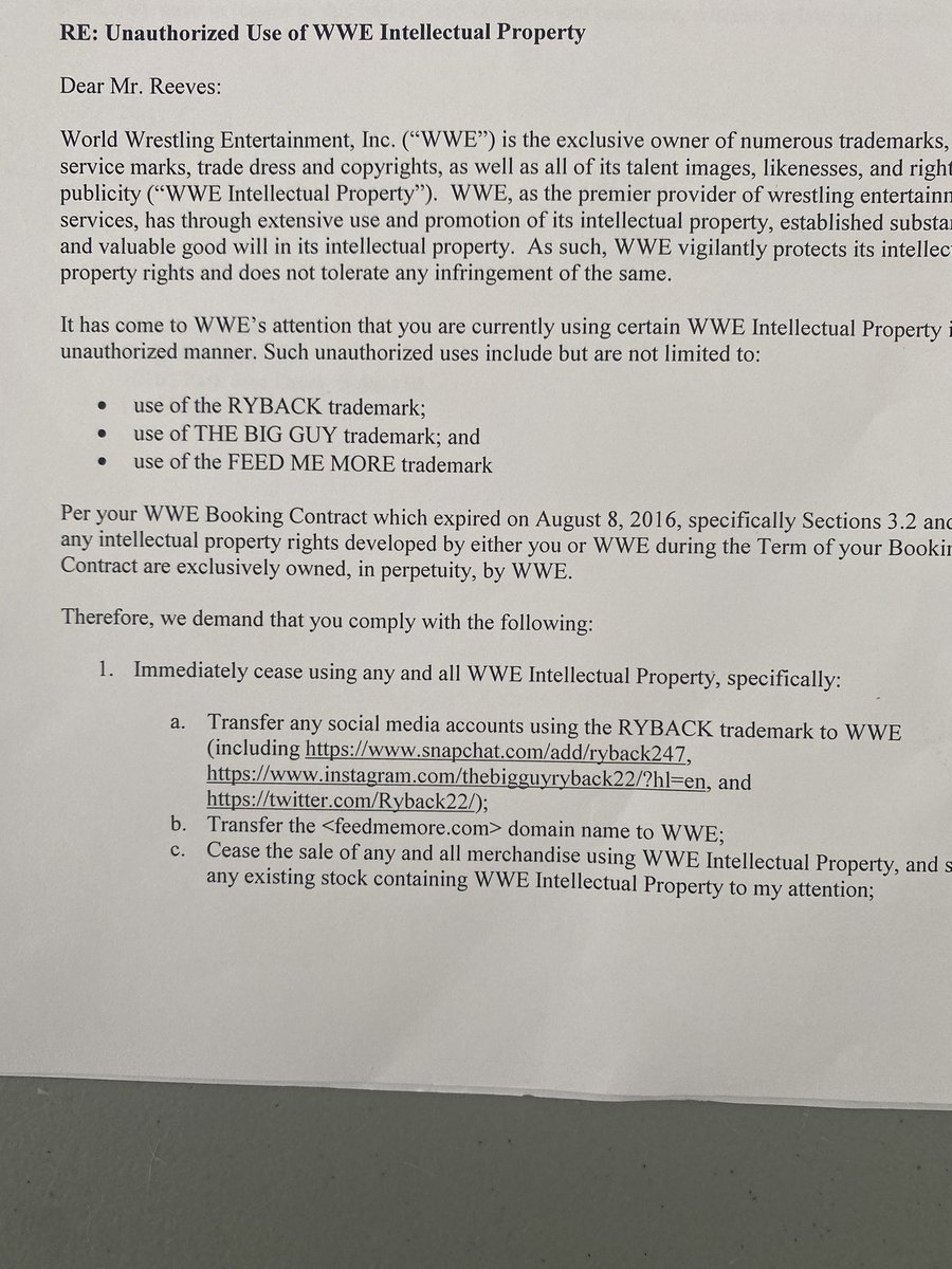 This is just 1 Document from @wwe where they tried to threaten me to HAND OVER all my Social Media accounts that I created. I have spoke the truth 💯 percent on everything and have no reason to lie. Why would a multi billion dollar company need my social media you ask? #Power
