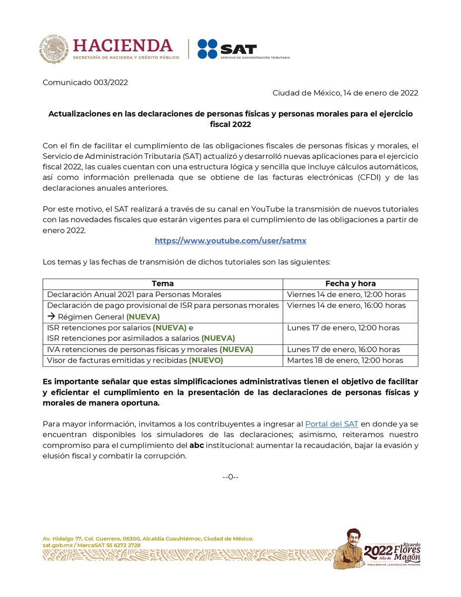 El SAT presentará el día de mañana, 26 de abril a las 11:00 horas, a través de su canal de YouTube, el video tutorial sobre los principales cambios y mejoras en la Declaración Anual 2020. Habrá un chat en vivo que responderá en tiempo real tus preguntas.
