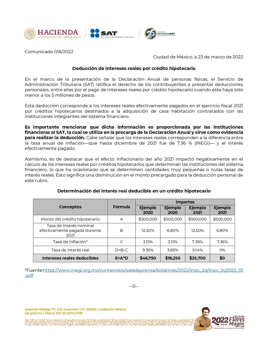 El SAT ratifica el derecho de las personas físicas a presentar deducciones personales como el pago de intereses por crédito hipotecario, las cuales son proporcionadas con información de las instituciones financieras.