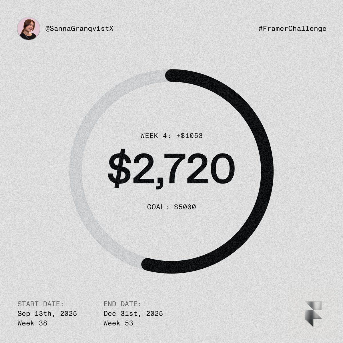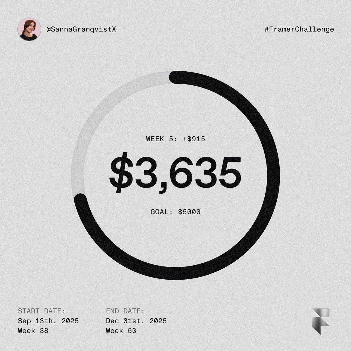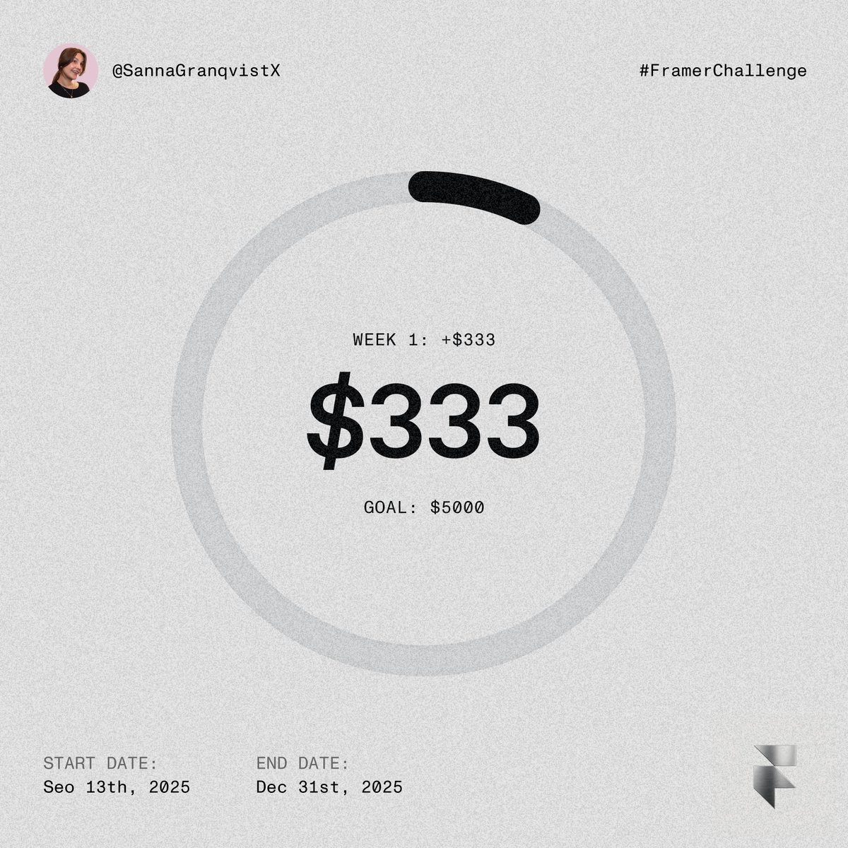 Week 1 of the #FramerChallenge (Sep 12–19) wrapped up. $333 earned Goal: $5000 ✍️ Notes: • Legal template Hallet got rejected → making improvements • Growing on X and getting to know the community • Nearly finished 3 templates → now in review mode • Wrapped up client work, waiting on payment Next week I’ll be teaching Framer to UX students in Stockholm, so template progress will slow down a bit.