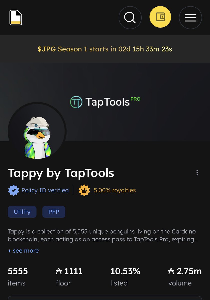 The utility of TAPPY by @TapTools is quit astonishing. The Taptools team have created the most detailed onchain analytics I’ve ever seen on any BLOCKCHAIN and the TAPPY NFTs are the key 🔑 to gain access. As the market gets ultra bullish and BILLIONS of dollars flows into our space tons of investors will seek out these powerful analytics to make more profitable trades as there will literally be BILLIONS at stake. TAPPY NFTs will be highly sorted after. Do not be surprised at a 3000 to 7000 ADA TAPPY floor price in 2024. #CARDANO