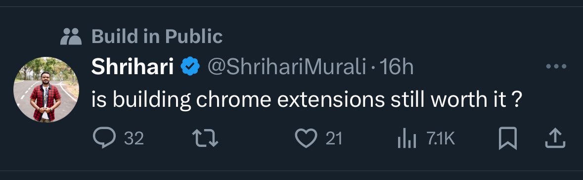Meet Shrihari, the indie developer on an exhilarating journey of building a product in public while juggling a 9 to 5 job! With a knack for turning coding challenges into compelling stories, they share the ups and downs of their self-taught journey with a sprinkle of humor.