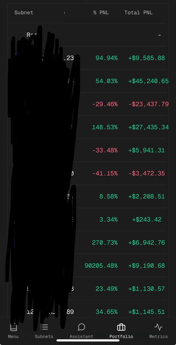 An example of how I trade $TAO subnets successfully: SN 75 - Hippius. GREAT subnet. And I like @mogmachine quite a bit. But it being a great subnet and liking Mog needs to be separated from my portfolio and my pockets. I was holding Hippius for weeks and it has been by far the worst performer in my portfolio, dragging down my gains. And now it has broken structure to the downside on the chart. It could go much lower. So I cut bait. I sold it. Not bc it’s a bad subnet. But bc holding it has hurt my profits and could hurt it much more if I marry this bag. So I’m not gonna do it. Could it turn around and rip much higher from here? Sure! If I see some life in the chart, I’ll jump back in. But for now, I stop the bleeding. Now it lets my string runners perform even better for me. This is how a portfolio manager manages risk and makes consistent profits. Don’t marry your bags in dTAO. There is too much opportunity cost you’re missing out on other subnets with stronger price action. It’s an attention economy in dTAO. Go to where the attention currently is and you will make $.