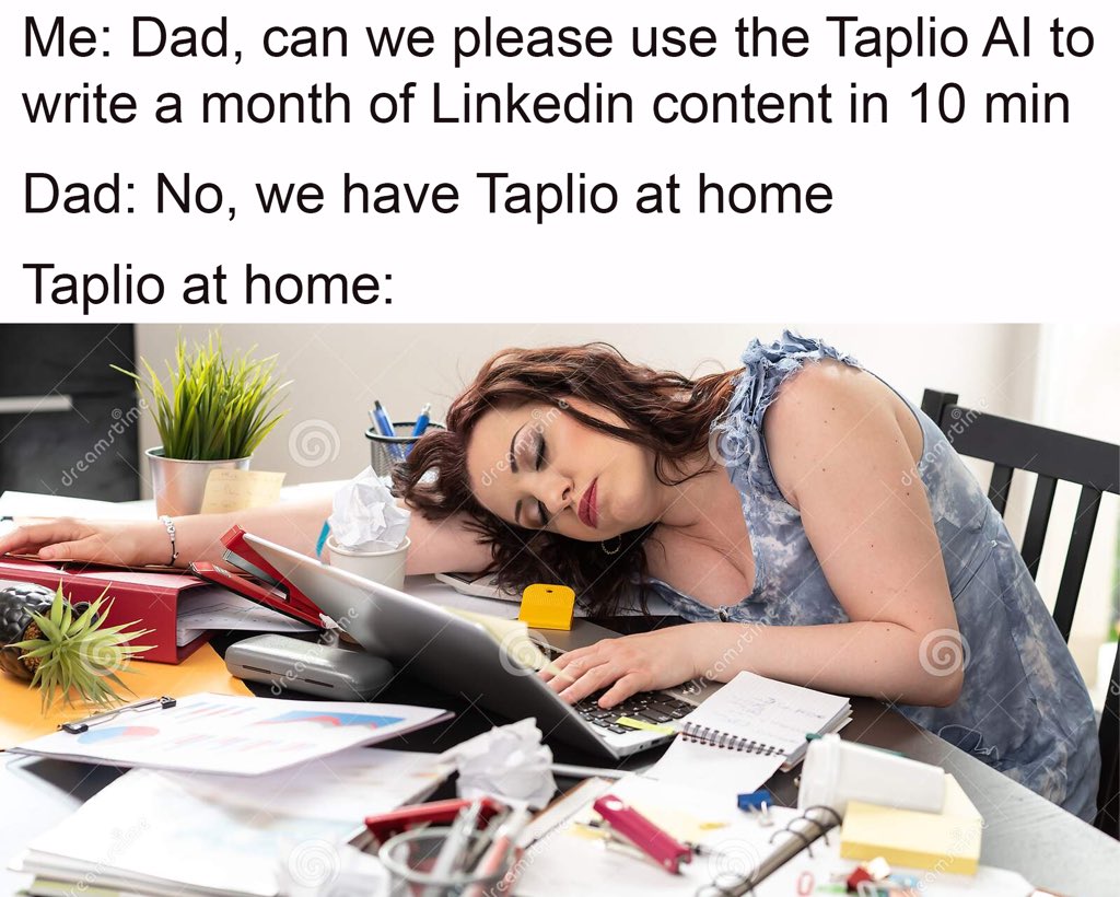 Hey Taplio, with all that tweeting about LinkedIn, it seems like you’re more focused on helping others find their voice than actually finding yours! Maybe it's time to give LinkedIn itself a little competition in the content game.