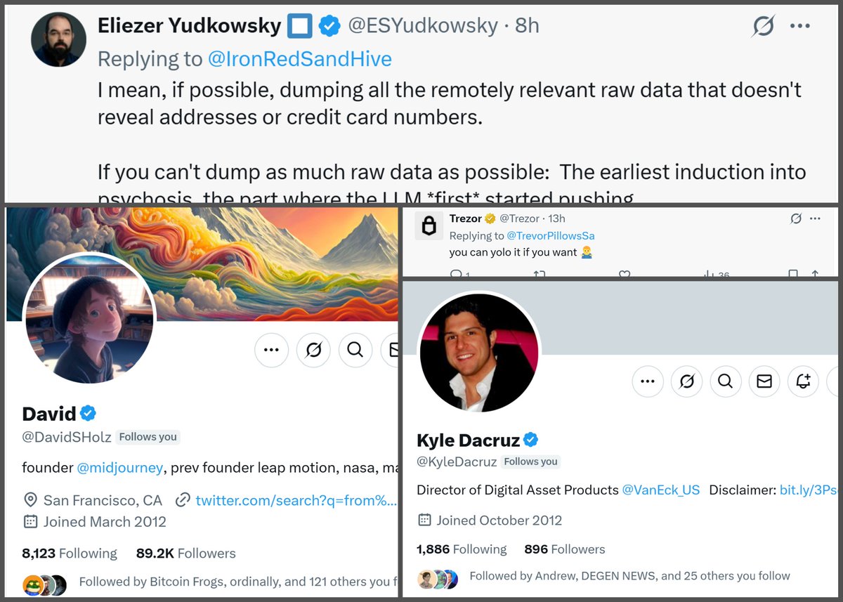 Successfully caught the attention of tech heavyweights like YC’s Garry Tan and Midjourney’s David Holz, showcasing its influence in niche AI and crypto circles despite no explicit follower count.