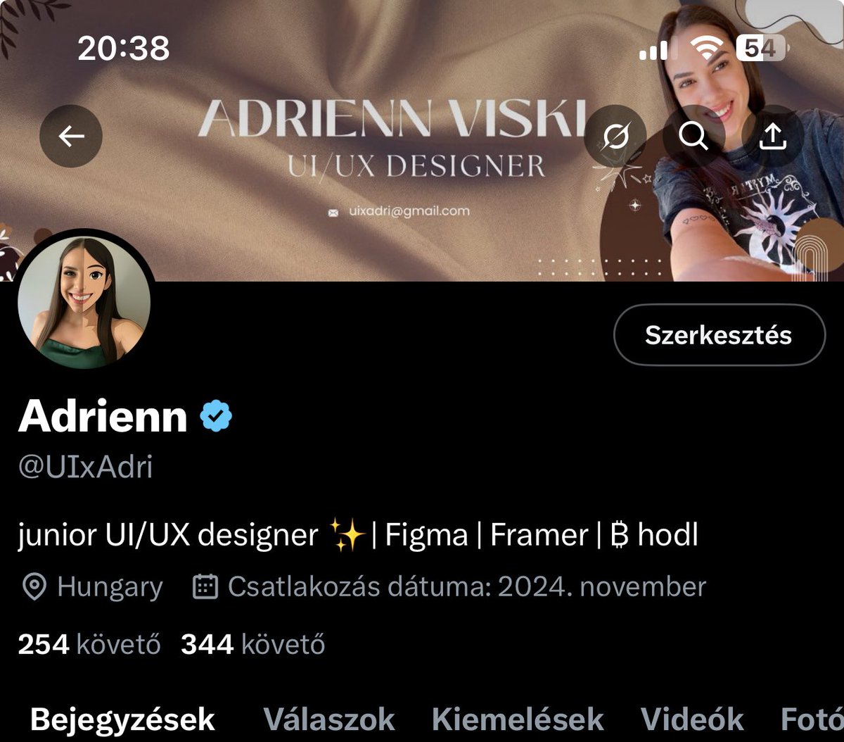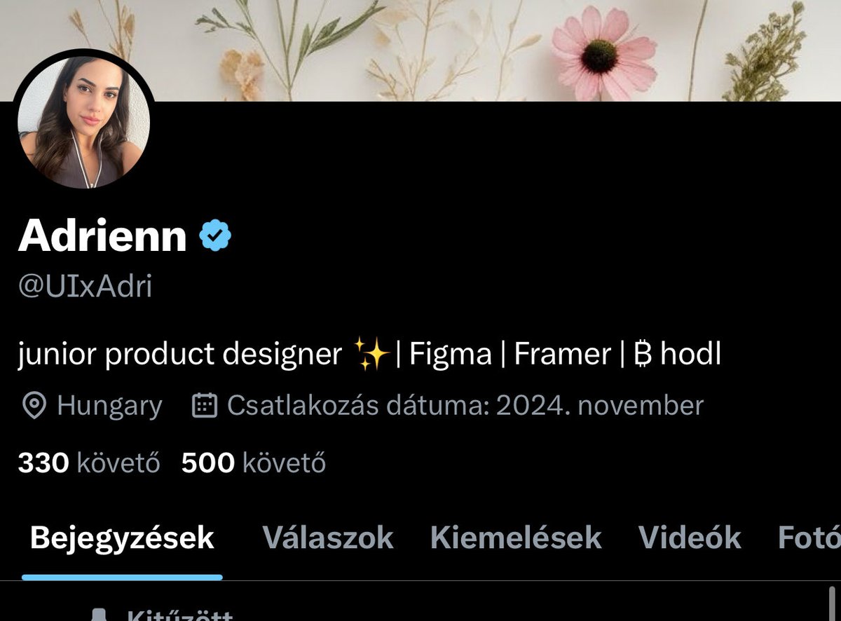 Adrienn is a junior product designer who thrives on building connections within the design community. She’s active, engaging, and eager to grow her network by sharing her design journey and collaborating with fellow Figma and Framer users. Her tweets reflect a warm, approachable personality that values mutual support and learning.