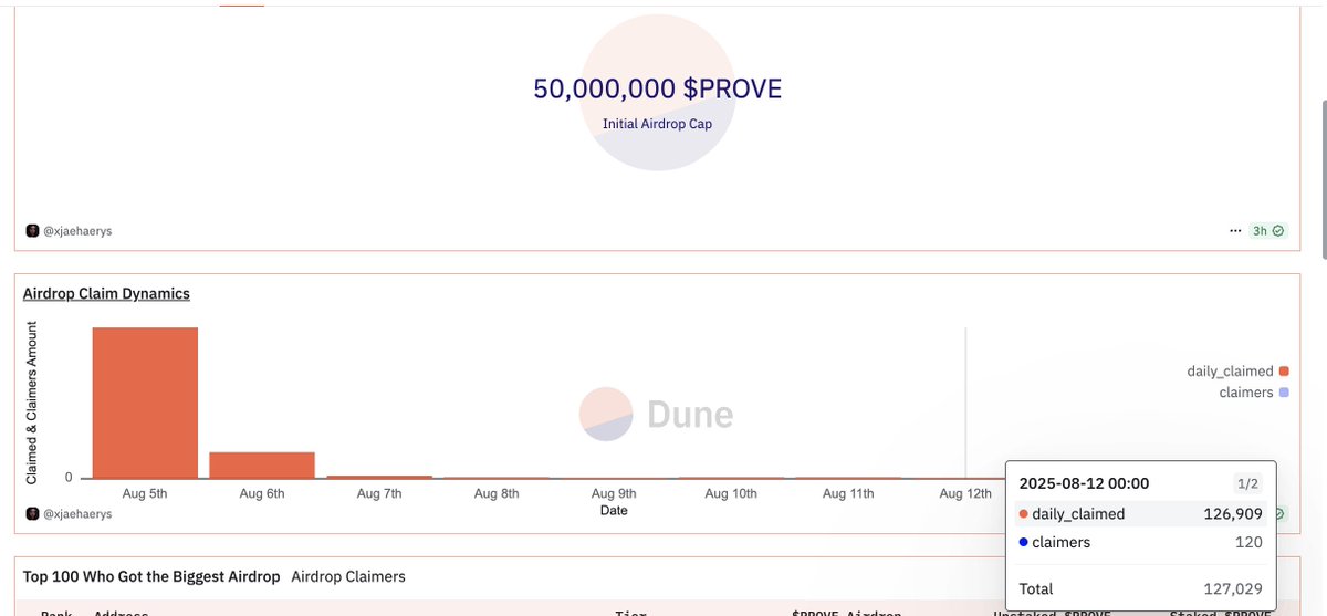 20 days remaining for $PROVE airdrop claim Succinct team clearly stated - unclaimed tokens gonna be used for staking incentives. and after third post TGE day, the average amount is ~150k claimed tokens/day. If it goes at the same rate, ~ 27M $PROVE will be redistributed among stakers. means it's gonna be BIGGER than the initial airdrop. whether it’s gonna be one big distribution or multiple seasons, we’ll find out soon. keep staking and enjoy the juicy APR if you are still looking the best way to maximize your PROVE exposure, check goated thread by @0xCRASHOUT ⤵️ x.com/0xCRASHOUT/sta… shout out @0xJaehaerys for $PROVE dashboard