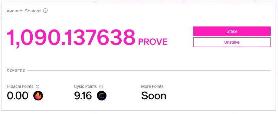 competition for top 100 @cysic_xyz $PROVE stakers is getting brutal yesterday I slid from #84 all the way down to #109 🥀 for reference: 1075 staked $PROVE = ~1.9 Cysic points / 24h → 1 $PROVE ≈ 0.001756 points. rn you need >1200 staked just to stay inside top 100. still no clarity on the NFT allowlist cutoff, but that’s my “safe zone,” so yeah… stacking more again shoutout to @Zun2025 for dashboard, only 10 credits to refresh the query dune.com/zunxbt/prove-s…
