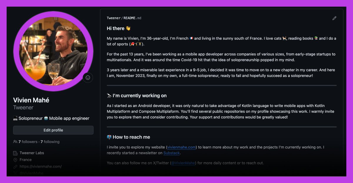 Vivien Mahé is a dedicated solopreneur and Kotlin enthusiast who crafts and curates powerful multiplatform tools that help developers launch projects faster. Through consistent updates and detailed showcases, Vivien builds a niche tech community around Kotlin Multiplatform libraries. A humble creator who values quality and utility over flashy virality, Vivien steadily nurtures engagement by sharing meaningful, developer-focused content.