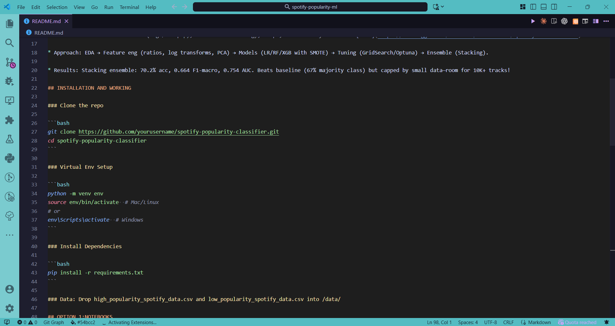 Completing his first full ML project — the Spotify-Classifier — and sharing it publicly to invite constructive feedback shows remarkable initiative and willingness to learn, marking a significant milestone in his tech journey.