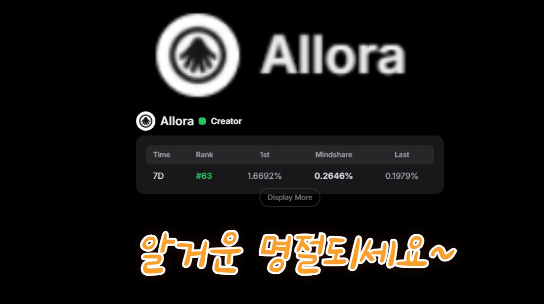 \n\n๊ทธ๋์ ๋ Allora TGE๋ ์ธ์ ์ฏค ํ๋ จ์ง...\n@alloranetwork\n\n์๋ก๋ผ TGE๊ฐ ์ธ์ ์ฏค์ผ์ง ํ์ค์ํ AI ๋คํธ์ํฌ(Decentralized AI Network)์ธ Allora๋ฅผ ํตํด ์์๋ณด๊ณ ์ถ๋ค์\n\nAllora AI๋ ์ปจํ