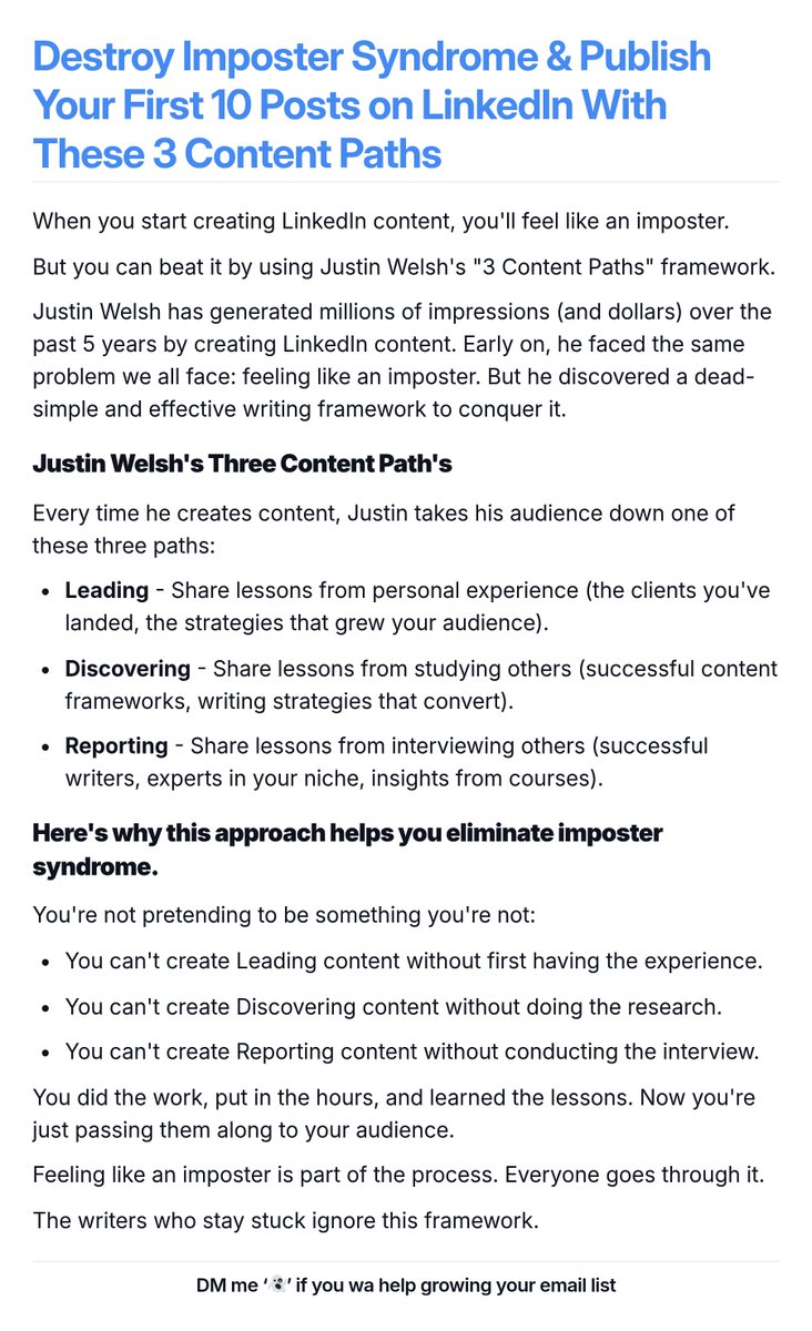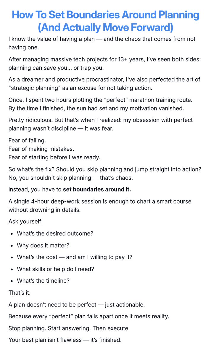 {"data":{"__meta":{"device":false,"path":"/creators/aj_decarli"},"/creators/aj_decarli":{"data":{"user":{"id":"3024833245","name":"AJ DeCarli 🚢","description":"Ghostwrite Educational Email Courses for Endurance Running Coaches | Love running far, writing & building in public | 4 x CIM Finisher","followers_count":123,"friends_count":180,"statuses_count":791,"profile_image_url_https":"https://pbs.twimg.com/profile_images/1976768086377472000/fmne2VP-_normal.jpg","screen_name":"aj_decarli","location":"California, USA","entities":{"description":{"urls":[]}}},"details":{"type":"The Creator","description":"AJ DeCarli is a passionate endurance runner and skilled educational writer who thrives on building in public and helping coaches excel through impactful email courses. With a solid dedication to personal growth and clear values guiding his journey, AJ embraces challenges both on the track and behind the keyboard. His authentic, thoughtful content resonates with a community eager to learn and grow alongside him.","purpose":"AJ's life purpose is to educate, inspire, and empower endurance running coaches by crafting engaging, educational content that drives meaningful progress, while also continuously developing himself through high-integrity, long-term goals and embracing discomfort for growth.","beliefs":"AJ values integrity, continuous learning, authentic teaching, and leading with love and grace. He believes in the power of long-term thinking and views discomfort as a necessary catalyst for genuine development.","facts":"AJ is a 4-time CIM (California International Marathon) finisher and recently committed to an analog planning approach with Michael Hyatt's Full Focus Planner to clearly define and pursue his core values and goals.","strength":"AJ's strengths lie in his authentic storytelling, dedication to consistent content creation, and ability to connect educational value with personal passion. His transparency and willingness to share both successes and vulnerabilities build trust and engagement.","weakness":"AJ tends to question his own authenticity at times, as seen in his tweet about feeling like a fraud after posting content—this self-doubt could potentially hold him back from fully amplifying his voice and influence.","roast":"AJ’s so dedicated to ‘building in public’ that you half-expect a live feed to track his bathroom breaks and meditation moments—if transparency was an Olympic sport, he’d be the reigning champ, leaving us wondering if he runs marathons or just sprints through his to-do lists.","win":"AJ's biggest win is successfully ghostwriting educational email courses that help endurance running coaches improve their businesses, all while achieving personal milestones like finishing the CIM marathon four times and embracing growth challenges head-on.","recommendation":"To grow his audience on X, AJ should harness storytelling by sharing more behind-the-scenes insights into his writing process and marathon training. Engaging threads that combine actionable tips with personal anecdotes will foster deeper connections and encourage shares. Regularly participating in relevant running and writing communities via replies and collaborative projects could also expand his reach."},"tweets":[{"bookmarked":false,"display_text_range":[0,276],"entities":{"hashtags":[],"media":[{"display_url":"pic.x.com/SIWg2AxD8L","expanded_url":"https://x.com/aj_decarli/status/1906111159435944275/photo/1","id_str":"1906111154121838592","indices":[277,300],"media_key":"3_1906111154121838592","media_url_https":"https://pbs.twimg.com/media/GnPd_uPXkAAtBR6.jpg","type":"photo","url":"https://t.co/SIWg2AxD8L","ext_media_availability":{"status":"Available"},"features":{"large":{"faces":[{"x":1057,"y":277,"h":89,"w":89}]},"medium":{"faces":[{"x":619,"y":162,"h":52,"w":52}]},"small":{"faces":[{"x":351,"y":92,"h":29,"w":29}]},"orig":{"faces":[{"x":1558,"y":409,"h":132,"w":132}]}},"sizes":{"large":{"h":1872,"w":2048,"resize":"fit"},"medium":{"h":1097,"w":1200,"resize":"fit"},"small":{"h":622,"w":680,"resize":"fit"},"thumb":{"h":150,"w":150,"resize":"crop"}},"original_info":{"height":2757,"width":3016,"focus_rects":[{"x":0,"y":736,"w":3016,"h":1689},{"x":0,"y":0,"w":2757,"h":2757},{"x":0,"y":0,"w":2418,"h":2757},{"x":0,"y":0,"w":1379,"h":2757},{"x":0,"y":0,"w":3016,"h":2757}]},"media_results":{"result":{"media_key":"3_1906111154121838592"}}}],"symbols":[],"timestamps":[],"urls":[],"user_mentions":[{"id_str":"14315150","name":"Michael Hyatt","screen_name":"MichaelHyatt","indices":[65,78]},{"id_str":"14315150","name":"Michael Hyatt","screen_name":"MichaelHyatt","indices":[65,78]}]},"extended_entities":{"media":[{"display_url":"pic.x.com/SIWg2AxD8L","expanded_url":"https://x.com/aj_decarli/status/1906111159435944275/photo/1","id_str":"1906111154121838592","indices":[277,300],"media_key":"3_1906111154121838592","media_url_https":"https://pbs.twimg.com/media/GnPd_uPXkAAtBR6.jpg","type":"photo","url":"https://t.co/SIWg2AxD8L","ext_media_availability":{"status":"Available"},"features":{"large":{"faces":[{"x":1057,"y":277,"h":89,"w":89}]},"medium":{"faces":[{"x":619,"y":162,"h":52,"w":52}]},"small":{"faces":[{"x":351,"y":92,"h":29,"w":29}]},"orig":{"faces":[{"x":1558,"y":409,"h":132,"w":132}]}},"sizes":{"large":{"h":1872,"w":2048,"resize":"fit"},"medium":{"h":1097,"w":1200,"resize":"fit"},"small":{"h":622,"w":680,"resize":"fit"},"thumb":{"h":150,"w":150,"resize":"crop"}},"original_info":{"height":2757,"width":3016,"focus_rects":[{"x":0,"y":736,"w":3016,"h":1689},{"x":0,"y":0,"w":2757,"h":2757},{"x":0,"y":0,"w":2418,"h":2757},{"x":0,"y":0,"w":1379,"h":2757},{"x":0,"y":0,"w":3016,"h":2757}]},"media_results":{"result":{"media_key":"3_1906111154121838592"}}}]},"favorited":false,"lang":"en","possibly_sensitive":false,"possibly_sensitive_editable":true,"retweeted":false,"fact_check":null,"id":"1906111159435944275","view_count":2757,"bookmark_count":3,"created_at":1743287288000,"favorite_count":15,"quote_count":0,"r