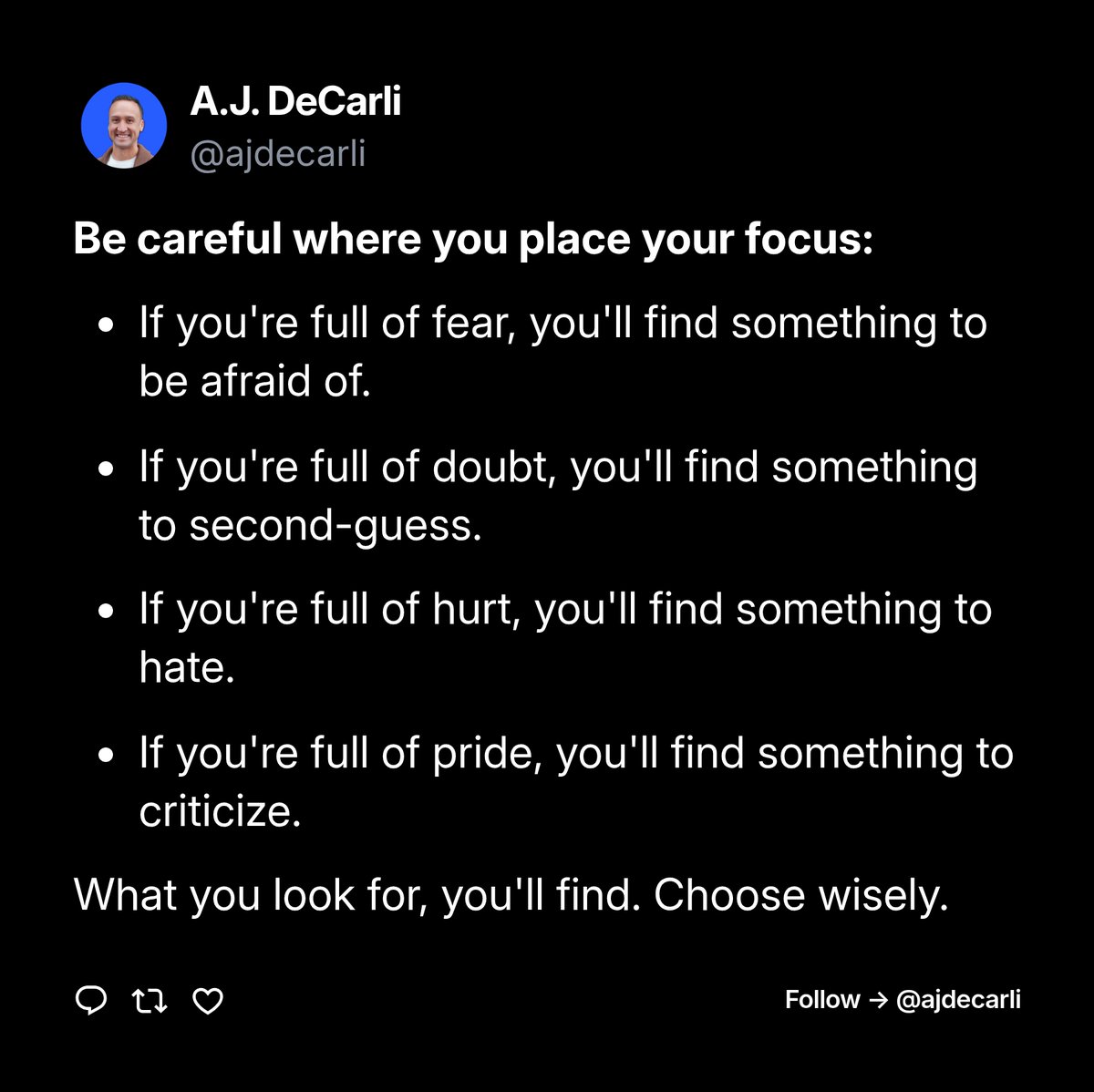 AJ tends to question his own authenticity at times, as seen in his tweet about feeling like a fraud after posting content—this self-doubt could potentially hold him back from fully amplifying his voice and influence.