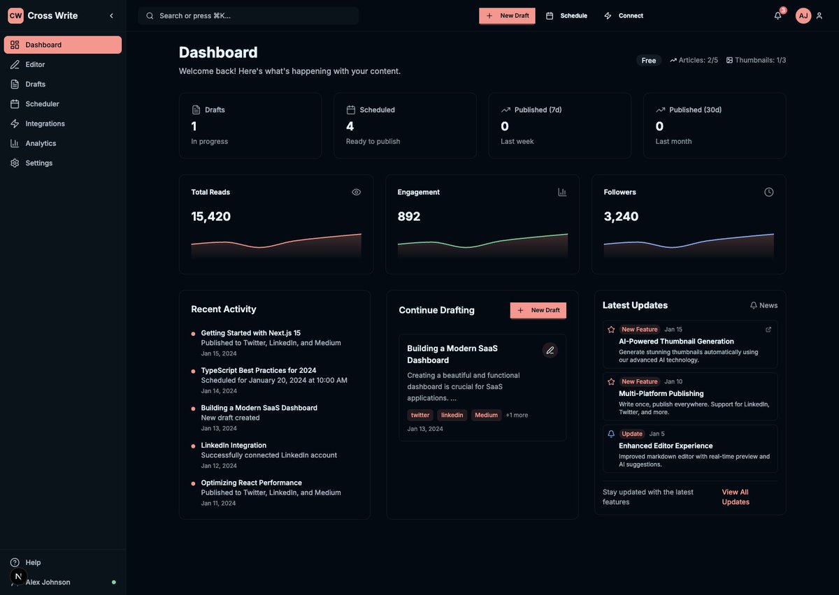 💪 Strength Alex’s biggest strengths are their resilience, entrepreneurial spirit, and authentic voice. They aren’t afraid to show their process and setbacks, which builds trust and relatability with their audience. Their technical background also gives them a solid edge in building functional, scalable products.