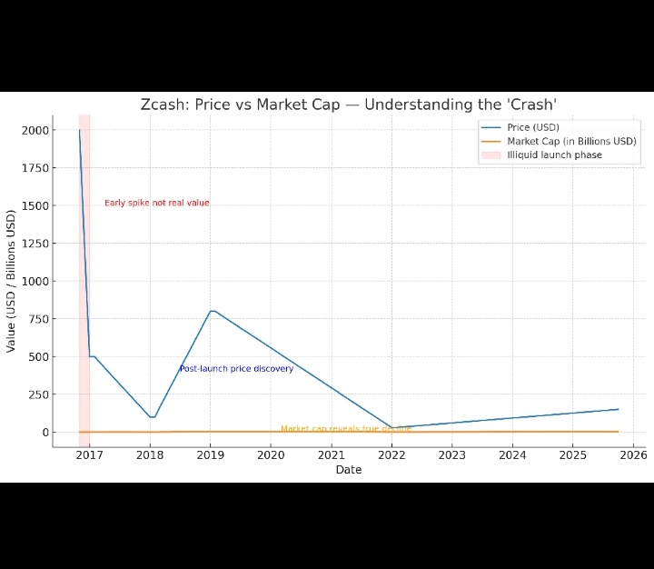 I’ve studied the chart, it’s clear the price never really reflected Zcash real value especially during launch. The early spike was just a liquidity illusion caused by extremely low supply. When i compare the market cap chart with the price chart, i saw how flat the valuation actually was in those first weeks. Once circulating supply increased, price and market cap started to align that’s when real value begins to show. The 90% crash people talk about isn’t entirely accurateand I was mainly focused on that. it’s more like the market normalizing after an artificial start. Now I know price is not equals to real value. I think most people this before(I'm just knowing this now) Thanks @ebfull