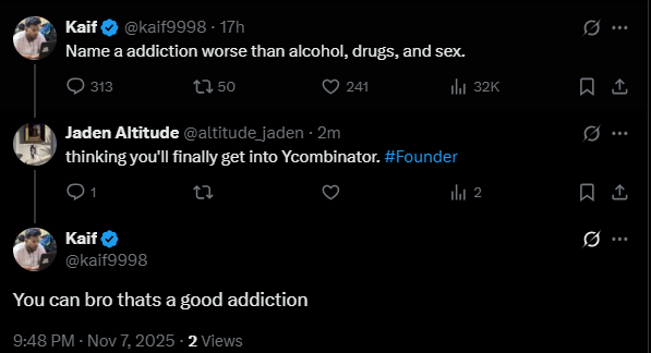 {"data":{"__meta":{"device":false,"path":"/creators/altitude_jaden"},"/creators/altitude_jaden":{"data":{"user":{"id":"1531066719480987649","name":"Jaden Altitude","description":"21.Clear-eyed architect of what's next\n___Founder of sentrybase\n___Astronomer and inventor\n___Invented ocean cleanup system\n___Future citizen on Mars","followers_count":258,"friends_count":458,"statuses_count":3608,"profile_image_url_https":"https://pbs.twimg.com/profile_images/1982915498347225088/uMGthkCz_normal.jpg","screen_name":"altitude_jaden","location":"","entities":{"description":{"urls":[]}}},"details":{"type":"The Innovator","description":"Jaden Altitude is a visionary architect of the future, blending invention and exploration with entrepreneurial spirit. From creating ocean cleanup systems to dreaming of Mars citizenship, Jaden embodies relentless curiosity and forward-thinking action. With a transparent approach to building and a candid voice, Jaden invites followers to witness the real journey behind breakthrough innovation.","purpose":"To pioneer transformative solutions that tackle critical environmental and technological challenges, while inspiring others through authentic storytelling and public building processes.","beliefs":"Jaden values radical transparency, perseverance through failure, and the pursuit of bold, ambitious goals. He believes that true innovation requires vulnerability and honesty about the struggles behind success.","facts":"This profile is not afraid to 'build in public,' showing the raw, unfiltered process of innovation rather than just the polished outcomes.","strength":"Jaden’s greatest strength is his fearless openness combined with visionary ambition—he takes complex problems and confidently leads the charge to create practical, future-focused inventions.","weakness":"Sometimes the blunt honesty and public airing of setbacks can alienate those who prefer a more polished narrative, potentially limiting mass appeal.","roast":"Jaden’s idea of privacy is about as existent as a clean office desk—if he’s not tweeting his sleep deprivation at 2AM, is he even innovating? Someone tell him Mars won’t colonize itself while he’s busy livestreaming his coffee breaks!","win":"Inventing an ocean cleanup system while simultaneously founding a startup and maintaining a highly engaging, if brutally honest, social presence is nothing short of a multitasking masterstroke.","recommendation":"To grow his audience on X, Jaden should lean into storytelling that balances his transparency with occasional highlights of progress milestones. Engage in community discussions around sustainability, space exploration, and startup culture, and use polls or questions to invite followers into the problem-solving process, turning observers into active participants."},"tweets":[{"bookmarked":false,"display_text_range":[0,73],"entities":{"hashtags":[],"media":[{"display_url":"pic.x.com/eei7RsmXlF","expanded_url":"https://x.com/altitude_jaden/status/1987605697173893473/photo/1","id_str":"1987605680690286592","indices":[74,97],"media_key":"3_1987605680690286592","media_url_https":"https://pbs.twimg.com/media/G5Vk1fcX0AAE7lB.png","type":"photo","url":"https://t.co/eei7RsmXlF","ext_media_availability":{"status":"Available"},"features":{"large":{"faces":[]},"medium":{"faces":[]},"small":{"faces":[]},"orig":{"faces":[]}},"sizes":{"large":{"h":164,"w":306,"resize":"fit"},"medium":{"h":164,"w":306,"resize":"fit"},"small":{"h":164,"w":306,"resize":"fit"},"thumb":{"h":150,"w":150,"resize":"crop"}},"original_info":{"height":164,"width":306,"focus_rects":[{"x":0,"y":0,"w":293,"h":164},{"x":47,"y":0,"w":164,"h":164},{"x":57,"y":0,"w":144,"h":164},{"x":88,"y":0,"w":82,"h":164},{"x":0,"y":0,"w":306,"h":164}]},"allow_download_status":{"allow_download":true},"media_results":{"result":{"media_key":"3_1987605680690286592"}}}],"symbols":[],"timestamps":[],"urls":[],"user_mentions":[{"id_str":"113130846","name":"Y Combinator","screen_name":"ycombinator","indices":[24,36]}]},"extended_entities":{"media":[{"display_url":"pic.x.com/eei7RsmXlF","expanded_url":"https://x.com/altitude_jaden/status/1987605697173893473/photo/1","id_str":"1987605680690286592","indices":[74,97],"media_key":"3_1987605680690286592","media_url_https":"https://pbs.twimg.com/media/G5Vk1fcX0AAE7lB.png","type":"photo","url":"https://t.co/eei7RsmXlF","ext_media_availability":{"status":"Available"},"features":{"large":{"faces":[]},"medium":{"faces":[]},"small":{"faces":[]},"orig":{"faces":[]}},"sizes":{"large":{"h":164,"w":306,"resize":"fit"},"medium":{"h":164,"w":306,"resize":"fit"},"small":{"h":164,"w":306,"resize":"fit"},"thumb":{"h":150,"w":150,"resize":"crop"}},"original_info":{"height":164,"width":306,"focus_rects":[{"x":0,"y":0,"w":293,"h":164},{"x":47,"y":0,"w":164,"h":164},{"x":57,"y":0,"w":144,"h":164},{"x":88,"y":0,"w":82,"h":164},{"x":0,"y":0,"w":306,"h":164}]},"allow_download_status":{"allow_download":true},"media_results":{"result":{"media_key":"3_1987605680690286592"}}}]},"favorited":false,"lang":"en","possibly_sensitive":false,"possibly_sensitive_editable":true,"retweeted":false,"fact_check":null,"id":"1987605697173893473","view_count":3537,"bookmark_count":0,"created_at":1762717100000,"favorite_count":9,"quote_count":0,"reply_count":2,"retweet_count":1,"user_id_str":"1531066719480987649","conversation_id_str":"1987605697173893473","full_text":"2025 GOAL: \n1: Get into @ycombinator before my birthday IN 2026 jan😫🙏😂😂😂🫶 https://t.co/eei7RsmXlF","in_reply_to_user_id_str":null,"in_reply_to_status_id_str":null,"is_quote_status":0,"is_ai":null,"ai_score":null},{"bookmarked":false,"display_text_range":[0,68],"entities":{"hashtags":[],"media":[{"display_url":"pic.x.com/sUwor9RS0N","expanded_url":"https://x.com/altitude_jaden/status/1987567981866467746/photo/1","id_str":"1987567877520519168","indices":[69,92],"media_key":"3_1987567877520519168","media_url_https":"https://pbs.twimg.com/media/G5VCdDqWcAAQD3R.jpg","type":"ph