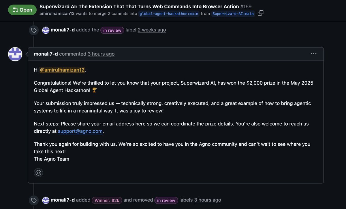 Securing 2nd place in the Global Agent Hackathon marks Amirul’s noteworthy achievement, validating his skills and innovation on an international stage while fueling his momentum for future projects.