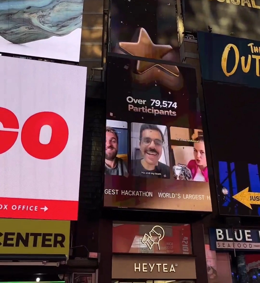 so.. i'm on TIMES SQUARE now last month, i took part in @boltdotnew's hackathon and decided to create vlogs everyday of my daily progress it was as uncomfortable as it sounds. i felt so cringe and stupid recording them. i was editing the videos after my agency work + building the app for the hackathon, so sometimes i had to stay up until 4 am. honestly, i'm not proud of how every day's vlogs turned out; most were average, and some were just bad. but i'm extremely proud of the consistency. i made a commitment to myself, and i refused to break it. and now i feel i'm not the same person who started making those vlogs. i'm comfortable being uncomfortable now. i believe i can do hard things. my only goal was to prove to myself i could stick with it. i never imagined that commitment would put my face in times square. thanks @boltdotnew, for the feature; my mom now thinks i'm some celebrity :) now, that discipline is spilling over. this month i'm doing 100 burpees a day (pls send help)