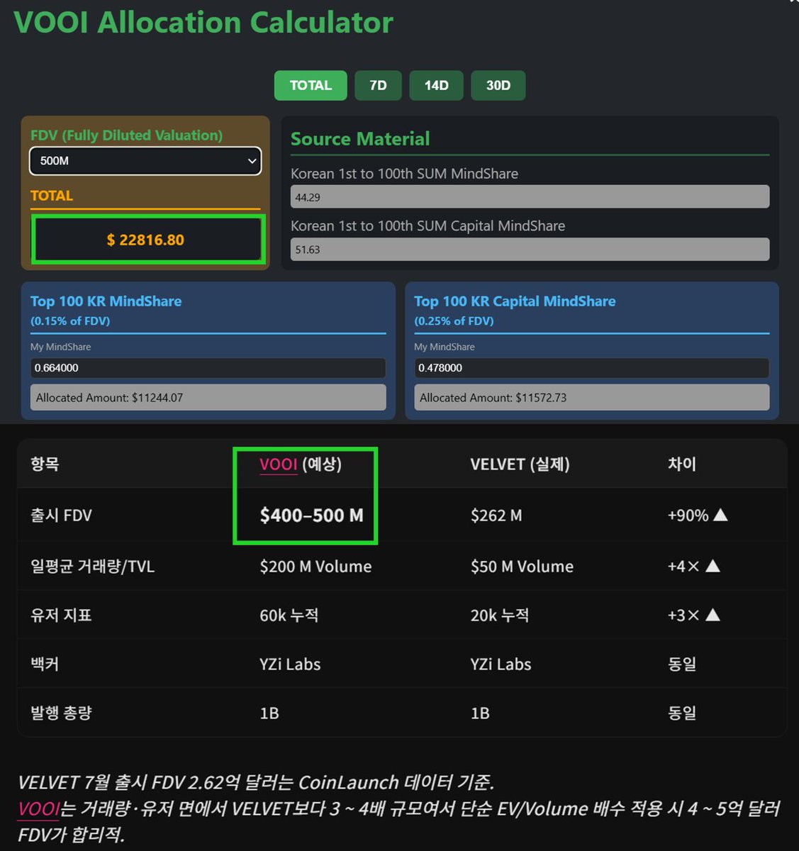 뿌이가 미래다 🍪CookieDAO x @vooi_io $MMT 가 미친 상승 보여줬죠 이제는 VOOI 차례입니다. $VOOI 가 CoinMarketCap에도 잡히고 TGE 힌트가 계속 나오고 있습니다 Crypto Copilot @Surf_Copilot 에게 직접 물어본 TGE 예상 FDV는 약 4억에서 5억 달러 구간 Star777님이 만들어주신 계산기에 따르면 약23천달러 수익! 근데 진짜 중요한 건 성과와 기술이 동시에 올라오고 있다는 사실이죠 [실적 상황] 일평균 거래량 2억에서 2억5천만 달러 누적 거래량 85억에서 132억 달러로 한 달 55퍼센트 성장 월간 활성 지갑 1만에서 1만5천 연간 수수료 수익 환산 약 1천8백만 달러 예상 [기술 포인트] DEX Aggregator 기반 거래 최적화 여러 유동성 소스에서 최적 가격 자동 라우팅 Spot DEX와 Perp(파생)까지 지원 단일 UI로 현물 스왑과 레버리지 거래 제공 Multichain 지원 구조 Astar 등 외부 체인,프로토콜 온보딩 진행 트레이딩 볼륨 인센티브 시스템 수수료 일부를 트레이더에게 리워드로 환원 슬리피지 최소화 라우팅 설계 시장 유동성에 따라 자동 경로 선택 리스크 관리 적용된 실행 구조 유동성 및 가격 변동성 고려한 체결 정책 운영 중요한건 끝까지 쿠키를 잘 구워서 입에 넣을때까지 cookie 공장 멈추며 안됩니다. VOOI TGE 눌러줘!