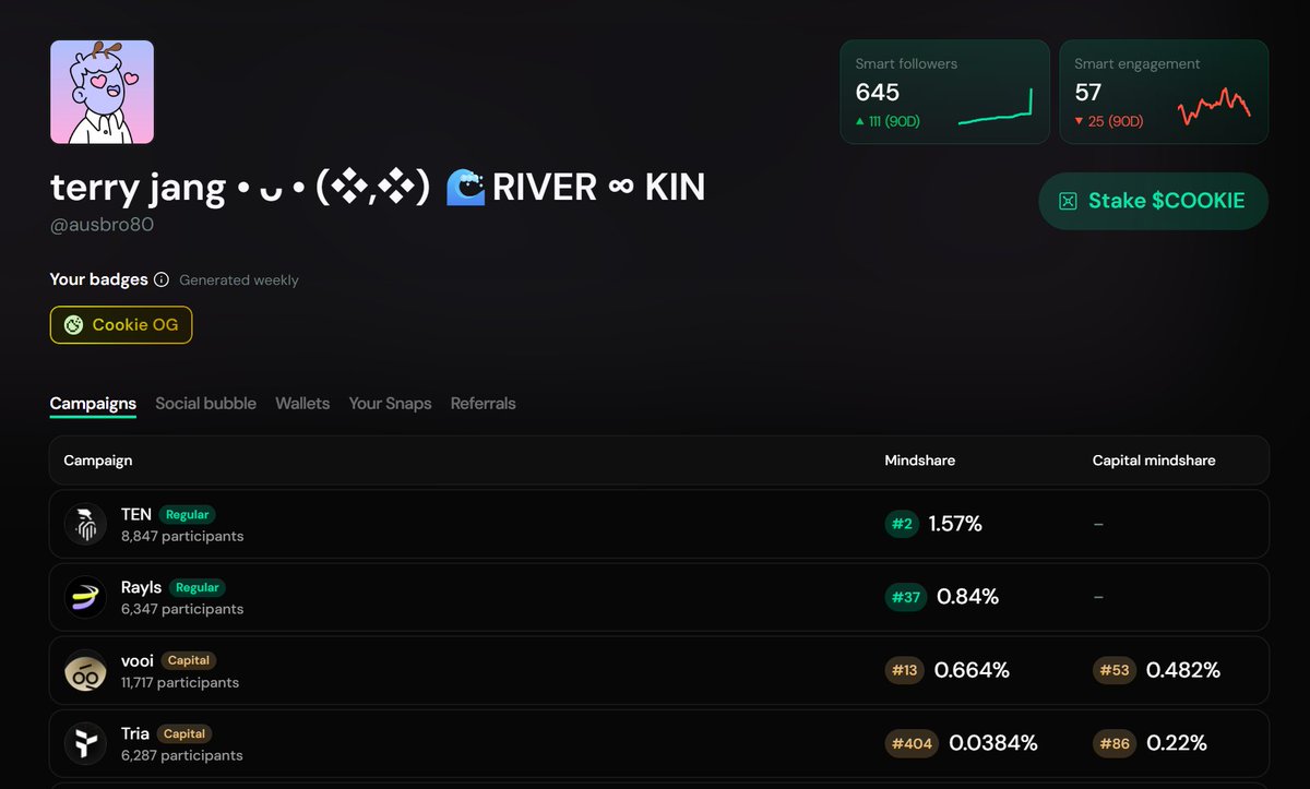미친 하락장이라도 @cookiedotfun 공장은 멈추지 않는다 $MMT 밤사이 5천원대까지 출렁였지만 Cookie 계속 구워야 이겨냅니다. 출근합시다. 뿌이! @vooi_io Epoch16 총 30M 포인트 PRO 16M Light 10M Spot 4M 24시간 볼륨 1.6억~1.7억 달러대 랭킹 기반 보상이라 지금이 진짜 승부처가 될 예정 Tria @useTria Visa 결제망 기반 실사용 카드 결제와 스왑을 한 화면에서 처리 보상도 바로 확인 150개국 지원과 1000개 이상 토큰 경로 최적화 Legion 라운드로 관심 집중 Ten 🔟 @tenprotocol Ethereum 확장 지향 L2 MemeSpinner 신상 게임 출시 wTENX로 Play 가능하고, 추후 $TEN 교환 Ray단 @RaylsLabs 기관용 하이브리드 결제 네트워크 브라질 Drex 파일럿에 프라이버시 솔루션 선정 Enygma 기반 ZK 프라이버시 은행이 직접 노드 운영 가능한 구조 하락장에 멈추면 관전자. Mindshare 계속 굽는사람에게 다음 사이클이 온다 오늘도 구워봅시당🍪🔥