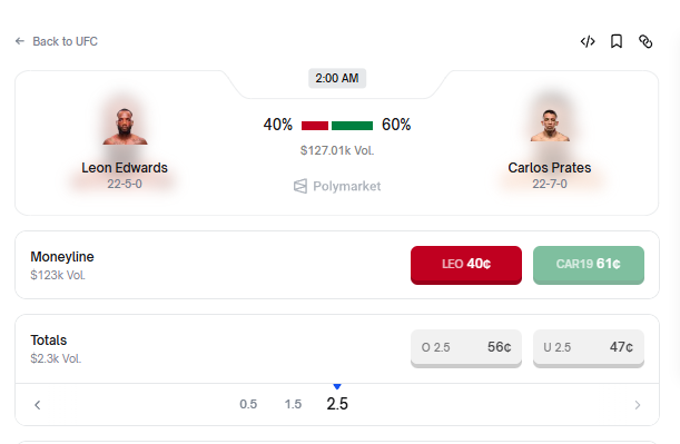 Polymarket is now an exclusive partner of the UFC, and as a real sports fan I simply can’t miss this UFC 322 will be the most exciting event since UFC 300, and it takes place this weekend - November 16 The card will probably be one of the best, and for the first time I’ll even watch the women’s fights, which I never really enjoyed in my life But I’ll probably bet on only 2–3 fights on @Polymarket - the ones that seem the most logical and interesting to me 1. Islam Makhachev vs Jack Della Maddalena The main event of the evening and the first real challenge for Islam after moving up a weight division This will be the biggest test of Islam’s career. This win will determine whether he becomes one of the greatest or whether the move up in weight was a mistake My pick - Islam Makhachev Why I think so: > The best wrestling in the division and arguably in the UFC overall > Better cardio: Jack often slows down by the end of round two > Islam’s experience at the previous weight class against world-class opponents gives him an advantage > Maddalena absorbs too many shots on the feet and is nowhere near top-10 level on the ground > We have the same first name Jack is dangerous, but not enough to beat Islam. I think Makhachev will establish control and break Maddalena’s pace I’ve been supporting Islam for a long time, and I hope he wins again and continues his streak in the new weight class 2. Leon Edwards vs Carlos Prates Edwards returns after a series of strong victories and is trying to hold his position in the division. Prates is a striker with a predatory style, but without real tests against elite fighters yet My pick - Leon Edwards Why I think so: > Superior BIQ: Leon is one of the smartest fighters in the UFC imo > Better work at range: his jab and low kicks created huge problems for many opponents > Leon won’t allow wild exchanges, his defense is excellent > Prates is dangerous in the center, but as I mentioned, Leon is extremely smart and I’m sure he prepared for this long in advance Prates is an entertaining fighter, but he’s too straightforward and walks forward Leon is too well-adapted to this type of style, no wonder he defeated one of the greatest fighters, Kamaru Usman 3. Roman Kopylov vs Gregory Rodrigues One of the most explosive fights on the card: a Russian boxer against a Brazilian who can both knock you out and choke you out My pick - Gregory Rodrigues Why Rodrigues wins: > More diverse arsenal - striking + elite BJJ (black belt) > Kopylov doesn’t like pressure: when opponents push him back, he starts to fall apart > Gregory has some of the heaviest hands in the middleweight division - one clean shot could end the fight > This fight is the most unpredictable in my opinion. Rodrigues is the favorite for me, but Kopylov can surprise everyone if he adapted to this kind of pressure during his training camp I’ll be watching the entire card, but these 3 fights are the most interesting for me I’ve been following all 6 of these fighters for a long time, especially Islam and Leon, and I hope they get the job done this Sunday Everything I have written is strictly my opinion, Im not an expert and am simply sharing my thoughts nfa, dyor