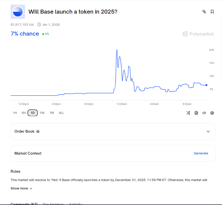 Good morning While I was sleeping, a very interesting situation occurred on @Polymarket Official Coinbase account on X changed its bio on December 17 Many thought this was a clear hint at the launch of the $BASE token, and the probability of this jumped sixfold to 20% But now it has fallen back to 7% So if you still believe that the Base TGE will happen this year, you can make a prediction on Polymarket - polymarket.com/event/will-bas…