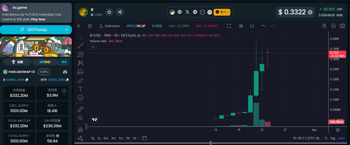 $RiverPts 昨晚再创新高,来到了 0.05U ,半夜价格回落,最低回调到 0.034U (这是倒车接人么?给没有上车的朋友机会了)