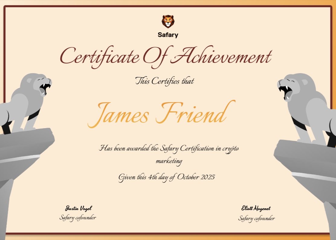 pretty damn proud to say that i’ve completed @Safaryclub Cohort 2 and earned myself the Safary Certification.