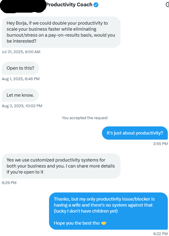 š Bonus Fun fact: Borjaās tweet asking the algorithm to show his message only to geniuses racked up over 1700 views and sparked plenty of witty replies, showcasing his playful engagement style and confident persona.