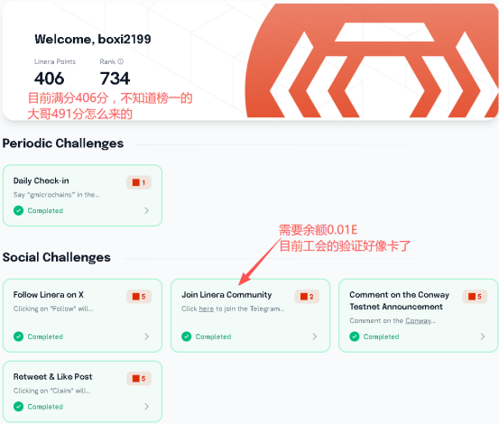 📌A16 Z 领投,耕耘许久的 @linera_io 上线了 Testnet Conway,社交+玩游戏赚积分,好像是跟之前的 Drops 推广任务有点分开的意思。