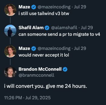 Brandon has tweeted over 20,000 times, sharing insights and announcing revolutionary tools like tailwindcss-signals and RenderHooks, which show his commitment to not only building but educating the community.
