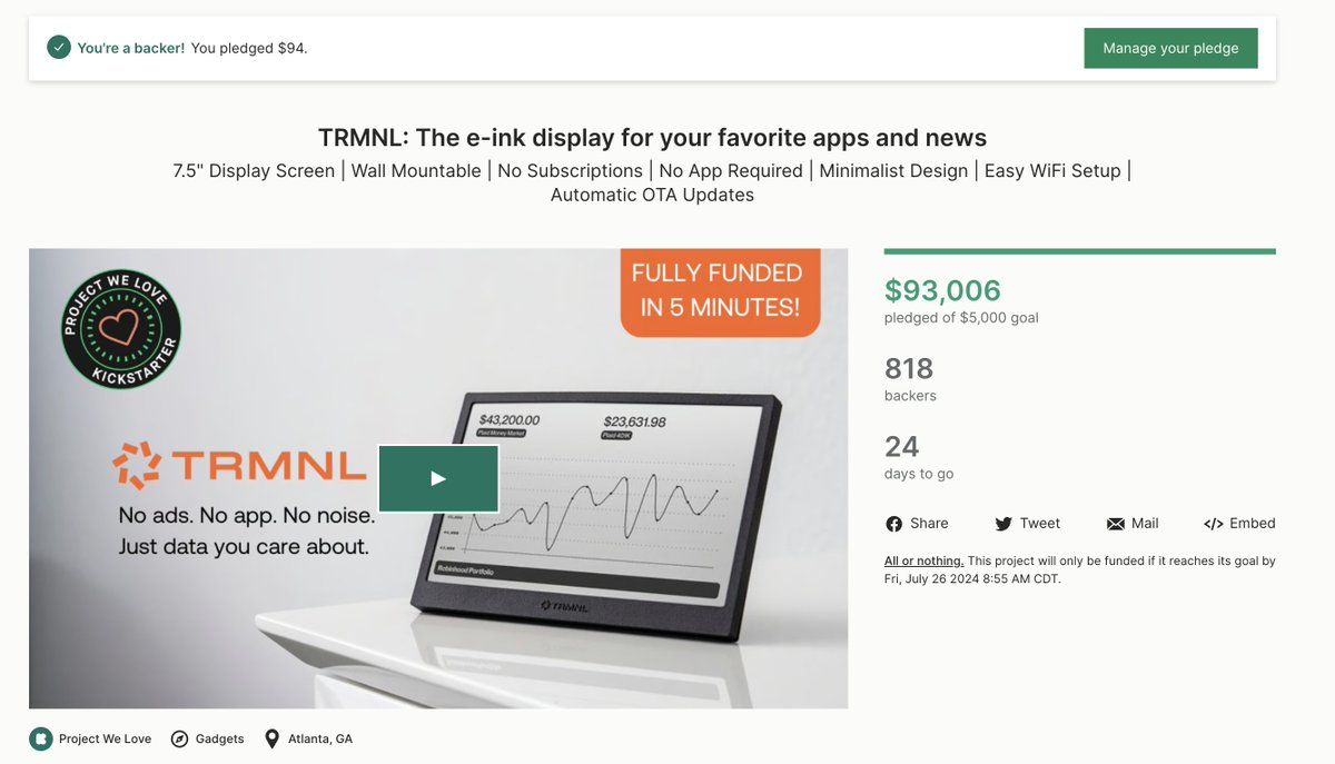 His notable achievement is founding Changebot, an AI agent for product teams, and successfully launching TRMNL on Kickstarter, demonstrating his ability to take innovative ideas from concept to community-backed reality.