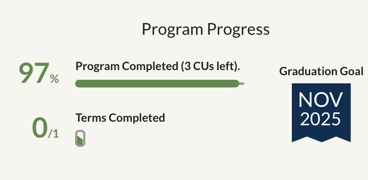 Now, I'm down to my last five courses and with some hard work will finish an entire CS degree before the end of November 2025.