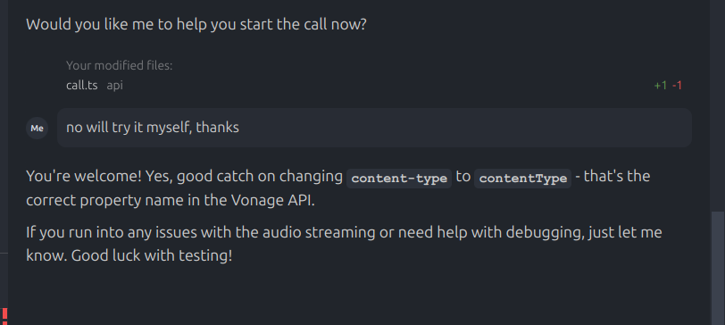 Then I thanked it and it answered with this: