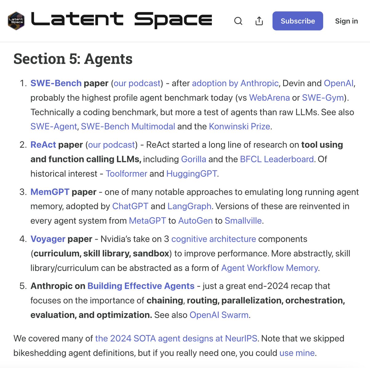 Really great reading list from @swyx - amazing to see MemGPT in the top 5 agent papers, side-by-side with one of my favorite LLM papers: ReAct
