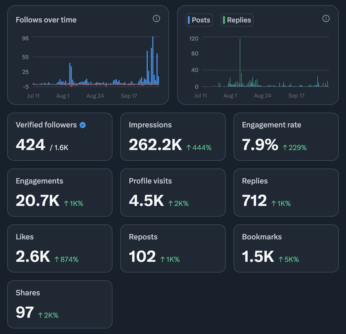 you can go super viral today, fade with tomorrow's post and come back in 2 days with just ~5 people remembering you from your first viral post