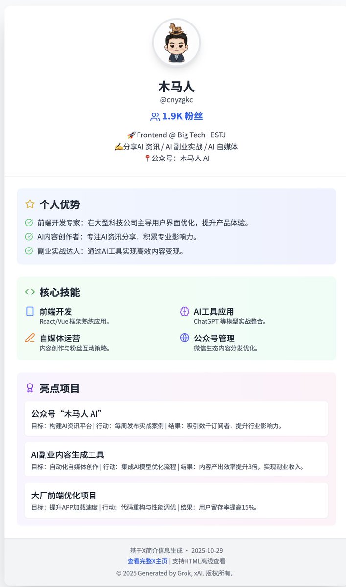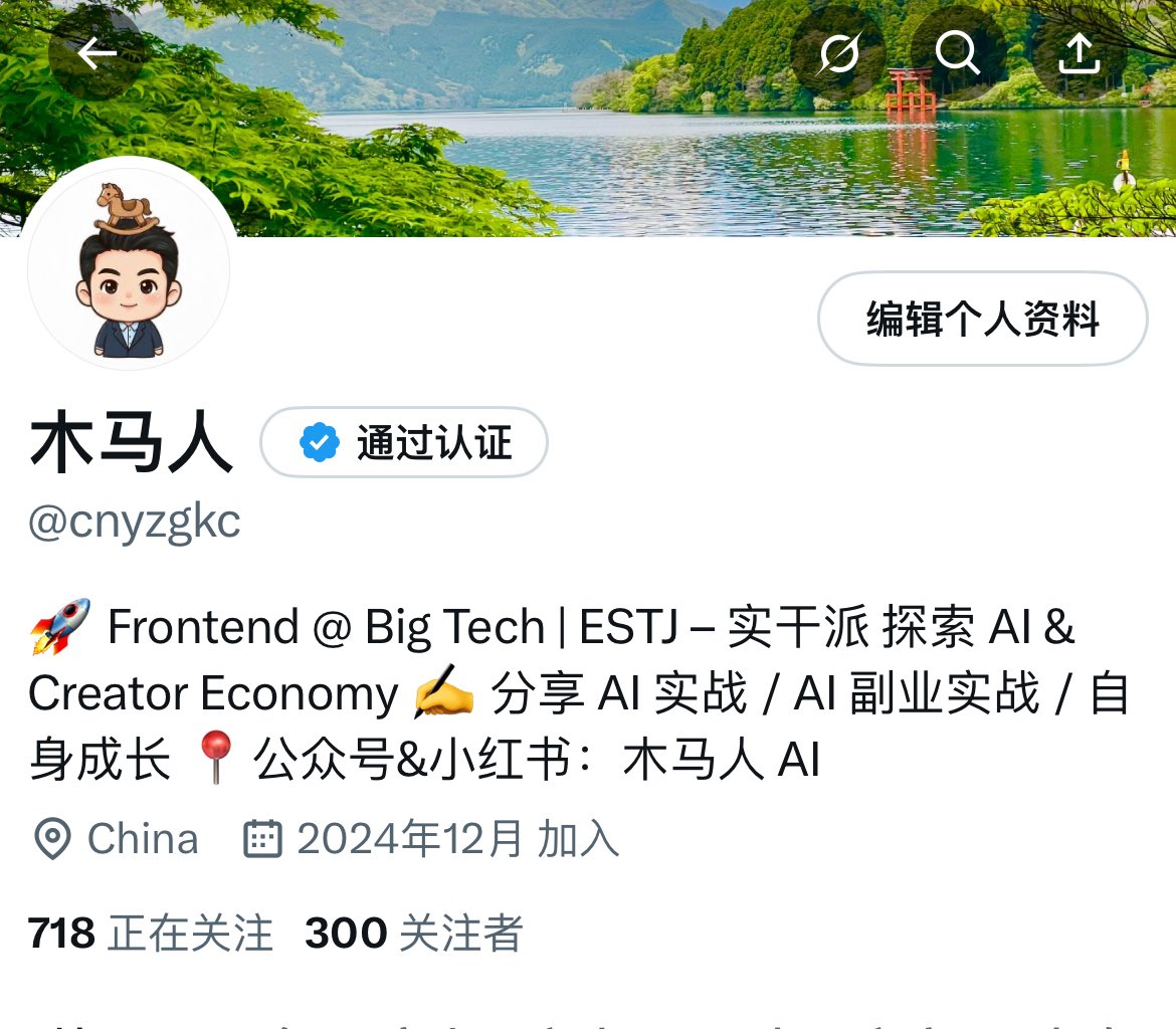 🚀 Frontend @ Big Tech | ESTJ ✍️ 分享AI 资讯 / AI 副业实战 / AI 自媒体 📍公众号:木马人 AI