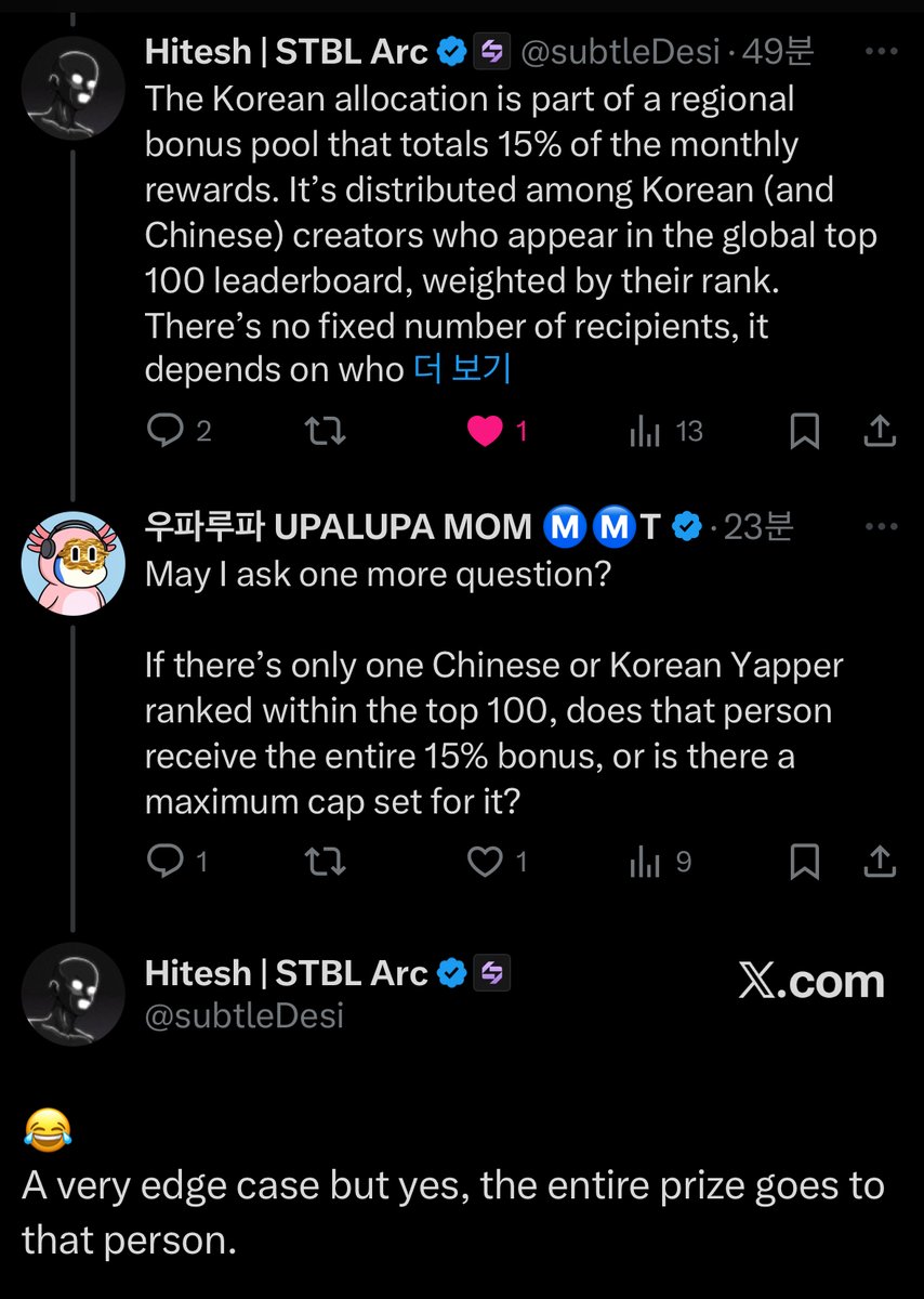 STBL 공식 트위터에 제가 한국 할당에 관한 질문을 했는데요. 프로젝트 관계자로 보이는 @subtleDesi 이 깔끔하게 정리해줘서 공유 드립니다.