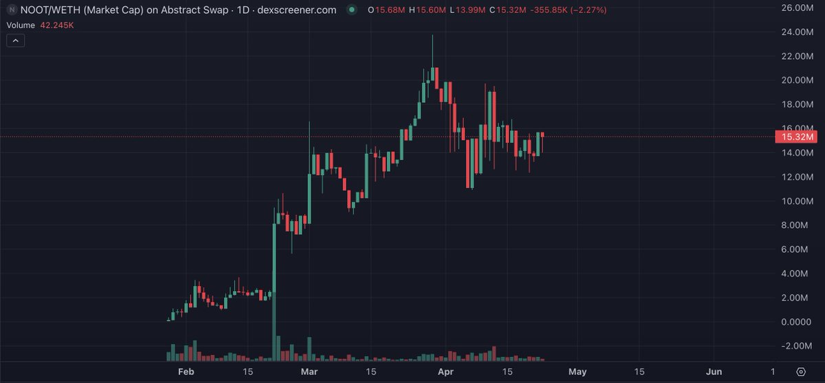 memes like $NOOT and $ABSTER lead the way as new money flows in Abstract.