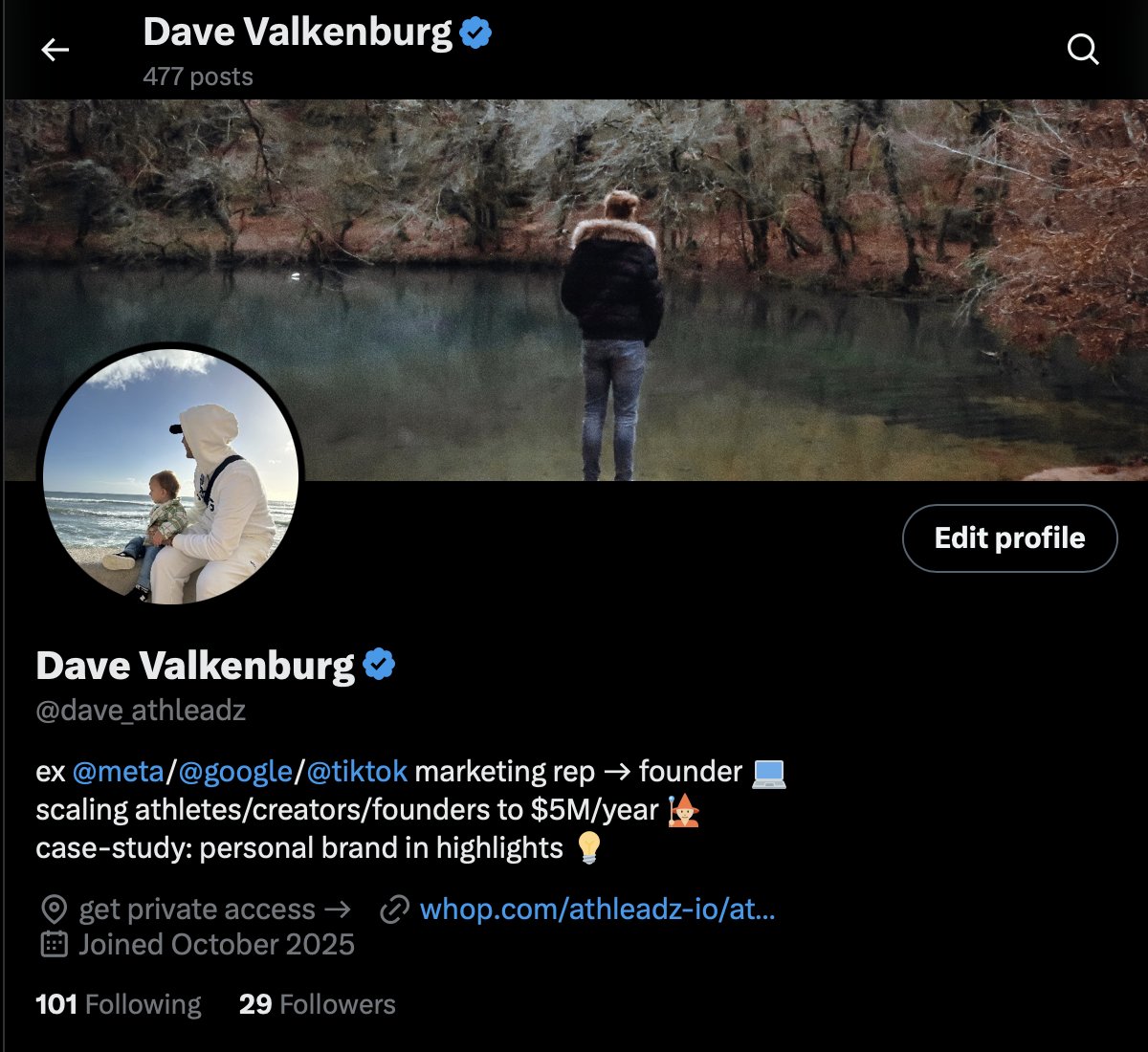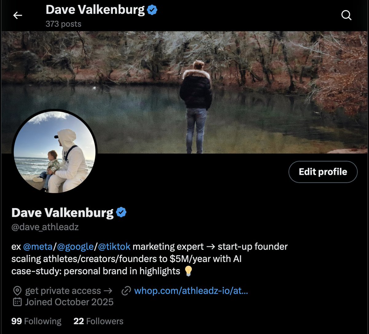 Dave Valkenburg is a dynamic founder and marketing veteran with experience at Meta, Google, and TikTok. He’s laser-focused on scaling athletes, creators, and founders to $5M/year, sharing his journey transparently by building his personal brand in public. Dave thrives on consistent hustle and delivering measurable growth through real-time insights.