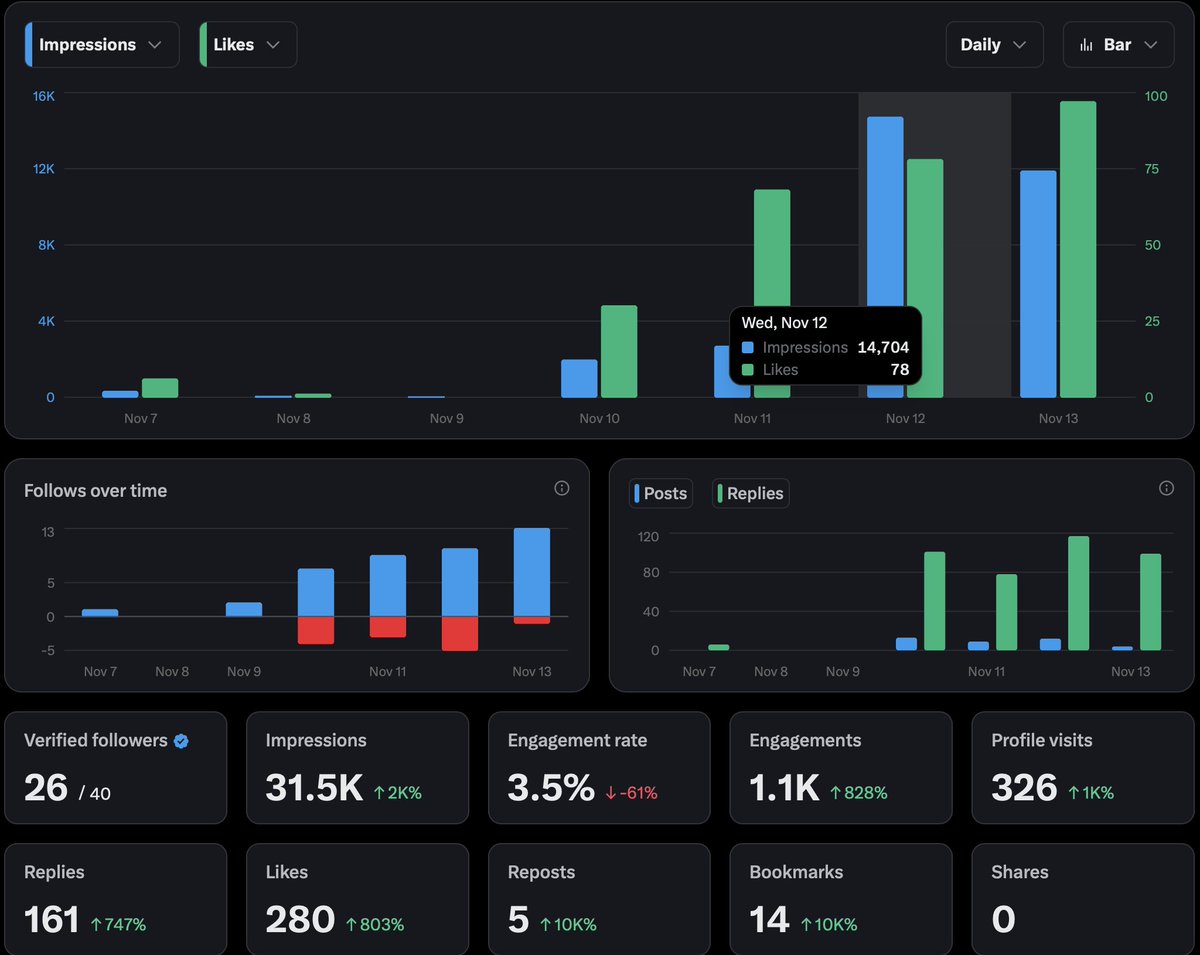 Fun fact: Dave grew his impressions from 1.6K to 5.6K within a single day during his public build — talk about scaling on steroids!