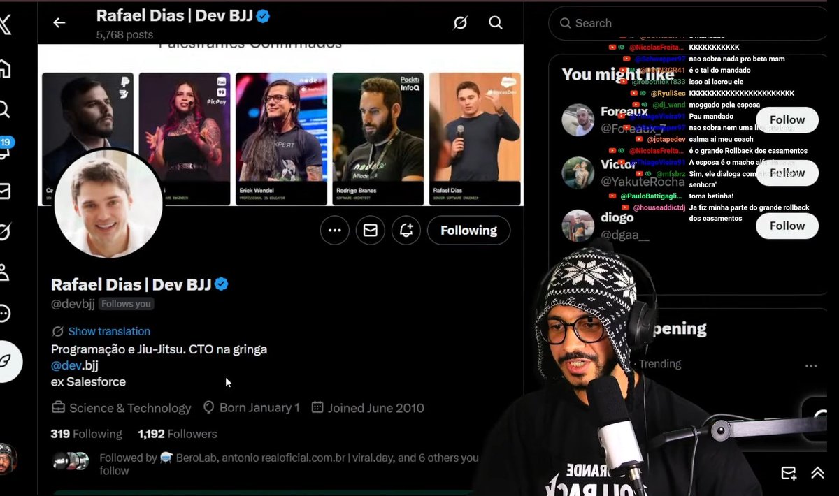 To grow his audience on X, Rafael should balance his in-depth technical threads with more engagement-driven, inclusive content that encourages discussion without alienating those with differing views. Using polls or ask-me-anything sessions about programming and BJJ could increase approachable interaction.