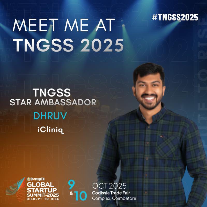 It’s an honour to be a Star Ambassador for the Tamil Nadu Global Startup Summit (TNGSS) 2025! On 9–10 October at CODISSIA, Coimbatore, the world of startups, investors, innovators, and changemakers will come together to celebrate ideas, build connections, and shape the future. I’ll be there representing the spirit of innovation and collaboration — and I’d love to see you too! *Why join TNGSS?* * Exclusive sessions with global leaders * Startup showcases & pavilions * Networking with investors, corporates, and ecosystem enablers * A celebration of Tamil Nadu’s vibrant startup ecosystem If you’re passionate about startups, technology, and the future of innovation this is the place to be! Join me at #TNGSS2025 — let’s connect, collaborate, and co-create the future together. To get discount 72% you may use coupon code : “ *Ambassador* “ #TNGSS #TamilNadu #Startups #Innovation #GlobalSummit #Networking