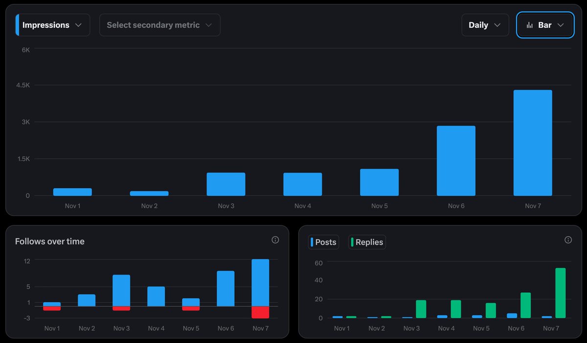 Next days I gotta commit more to replying to others’ posts grow this mf account