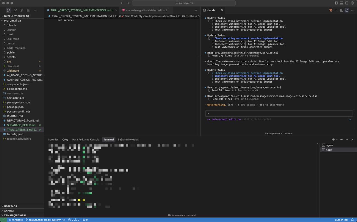 vibecoding'de yeni projeye nasıl başlıyorum? > gemini 2.5 pro'ya projeyi anlat, bana projeyle ilgili sorular sorsun > prd oluşturmasını iste > vscode/cursor aç, terminale "npx create-next-app@latest" yaz ve kur > /docs klasörünü oluştur, gemini 2.5 pro'dan aldığın prd'yi kaydet > terminal'den "claude" başlat ve /init yap > init bitince, shift+tab ile plan modunu aç > plan moduna "/docs'da yer alan PRD'ye göre bir plan yap, şunları şunları ekle vs." > planı onayla > claude kapa > terminali tekrar aç "claude --continue --dangerously-skip-permissions" yaz > kahve koy, spor yap, duşunu al gel > test et