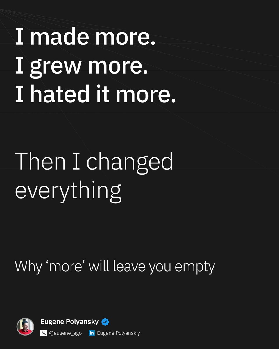{"data":{"__meta":{"device":false,"path":"/creators/eugene_ego"},"/creators/eugene_ego":{"data":{"user":{"id":"184364858","name":"Eugene Polyansky","description":"Most agency owners run broken businesses, leaking time, money, and sense. I help you fix it with structure at the system level.\n20+ years Agency Owner (Exited).","followers_count":1010,"friends_count":307,"statuses_count":24204,"profile_image_url_https":"https://pbs.twimg.com/profile_images/1799850171108384769/oXV_Nku__normal.png","screen_name":"eugene_ego","location":"Systems to fix your chaos →","entities":{"description":{"urls":[]},"url":{"urls":[{"display_url":"whodidsaythat.me/founder-resour…","expanded_url":"https://www.whodidsaythat.me/founder-resources","url":"https://t.co/SwbpTBwtwV","indices":[0,23]}]}}},"details":{"type":"The Entrepreneur","description":"Eugene Polyansky is a seasoned entrepreneur dedicated to helping agency owners break free from burnout by building strong, scalable business systems. With over 20 years of hands-on experience and a successful exit behind him, Eugene shares practical wisdom on optimizing operations without losing your soul. His approach turns chaos into streamlined success through systems, tools, and mindset shifts.","purpose":"Eugene’s life purpose is to empower small and lifestyle business founders to escape operational overwhelm and build sustainable, scalable companies by implementing smart systems and processes. He aims to help entrepreneurs work smarter, not harder, and maintain control over their time and energy while achieving growth.","beliefs":"He believes entrepreneurship is inherently challenging and that there are no shortcuts to success. Eugene values hard work, persistence, and continuous optimization through systems thinking over quick-fix hacks. He firmly believes burnout is caused by broken systems, not individual mindset failures, advocating for structural solutions rather than superficial motivation.","facts":"Fun fact: Eugene has tweeted over 24,000 times, sharing his deep well of knowledge, and has helped businesses generate $15M in turnover — all while mastering the art of escaping founder burnout with smart operational design.","strength":"His strengths lie in extensive industry experience, practical systems expertise, and an empathetic understanding of founder pain points. Eugene’s ability to communicate complex operational fixes in accessible, actionable advice makes him a trusted authority for entrepreneurs looking to scale sustainably.","weakness":"Eugene’s no-nonsense, ‘hard work is king’ mentality might sometimes come off as too strict or old-school in an era craving easy solutions. His focus on systems and structure might intimidate or overwhelm entrepreneurs seeking quick inspiration or silver bullets.","recommendation":"To grow his audience on X, Eugene should lean into his storytelling strength by sharing more personal success and failure anecdotes paired with actionable tips, making his wisdom more relatable and shareable. Engaging in more interactive Q&A threads and community challenges focused on system hacks could boost follower engagement and visibility.","roast":"For a guy who preaches escaping burnout, Eugene probably needs a system just to take a lunch break — between tweeting 24k times and fixing everyone else’s broken businesses, does he even remember what downtime feels like?","win":"Turning a bootstrapped IT outsourcing startup into a $3M+ annual turnover, multi-country operation with 80+ employees — and then using those hard-earned lessons to help other founders avoid the same pitfalls."},"tweets":[{"bookmarked":false,"display_text_range":[0,118],"entities":{"hashtags":[],"media":[{"display_url":"pic.x.com/Q8lRTrJ9H7","expanded_url":"https://x.com/eugene_ego/status/1917580213971739069/photo/1","id_str":"1917580209584570368","indices":[119,142],"media_key":"3_1917580209584570368","media_url_https":"https://pbs.twimg.com/media/GpydCnSbgAAexPo.jpg","type":"photo","url":"https://t.co/Q8lRTrJ9H7","ext_media_availability":{"status":"Available"},"features":{"large":{"faces":[{"x":935,"y":459,"h":99,"w":99}]},"medium":{"faces":[{"x":548,"y":269,"h":58,"w":58}]},"small":{"faces":[{"x":310,"y":152,"h":33,"w":33}]},"orig":{"faces":[{"x":1462,"y":718,"h":156,"w":156}]}},"sizes":{"large":{"h":2048,"w":1638,"resize":"fit"},"medium":{"h":1200,"w":960,"resize":"fit"},"small":{"h":680,"w":544,"resize":"fit"},"thumb":{"h":150,"w":150,"resize":"crop"}},"original_info":{"height":3200,"width":2560,"focus_rects":[{"x":0,"y":3,"w":2560,"h":1434},{"x":0,"y":0,"w":2560,"h":2560},{"x":0,"y":0,"w":2560,"h":2918},{"x":240,"y":0,"w":1600,"h":3200},{"x":0,"y":0,"w":2560,"h":3200}]},"media_results":{"result":{"media_key":"3_1917580209584570368"}}}],"symbols":[],"timestamps":[],"urls":[],"user_mentions":[]},"extended_entities":{"media":[{"display_url":"pic.x.com/Q8lRTrJ9H7","expanded_url":"https://x.com/eugene_ego/status/1917580213971739069/photo/1","id_str":"1917580209584570368","indices":[119,142],"media_key":"3_1917580209584570368","media_url_https":"https://pbs.twimg.com/media/GpydCnSbgAAexPo.jpg","type":"photo","url":"https://t.co/Q8lRTrJ9H7","ext_media_availability":{"status":"Available"},"features":{"large":{"faces":[{"x":935,"y":459,"h":99,"w":99}]},"medium":{"faces":[{"x":548,"y":269,"h":58,"w":58}]},"small":{"faces":[{"x":310,"y":152,"h":33,"w":33}]},"orig":{"faces":[{"x":1462,"y":718,"h":156,"w":156}]}},"sizes":{"large":{"h":2048,"w":1638,"resize":"fit"},"medium":{"h":1200,"w":960,"resize":"fit"},"small":{"h":680,"w":544,"resize":"fit"},"thumb":{"h":150,"w":150,"resize":"crop"}},"original_info":{"height":3200,"width":2560,"focus_rects":[{"x":0,"y":3,"w":2560,"h":1434},{"x":0,"y":0,"w":2560,"h":2560},{"x":0,"y":0,"w":2560,"h":2918},{"x":240,"y":0,"w":1600,"h":3200},{"x":0,"y":0,"w":2560,"h":3200}]},"media_results":{"result":{"media_key":"3_1917580209584570368"}}}]},"favorited":false,"lang":"en","possibly_sensitive":false,"possibly_sensit