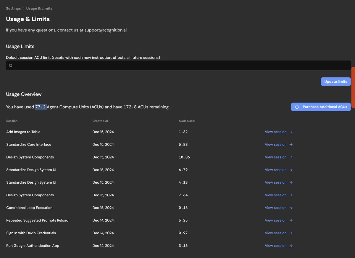 I've used Devin for 3 days now, and to my surprise I've already consumed 77.2 ACUs (Agent Compute Units) out of 172.8 / month for $500/month.