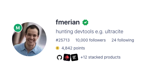 Fmerian/launch is a passionate devtools hunter and product marketer, constantly exploring new tech on Product Hunt and actively engaging with startup launches. With a prolific tweet history, they thrive on sharing tools that empower growth and innovation. Their journey is marked by collaborations and ambassador roles that reflect a hands-on approach to shaping products.